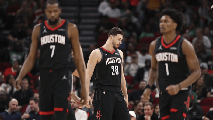 在休赛期,他们用杰伦·格林和狄龙·布鲁克斯两位后卫,加上2025年首轮10号签以及多个次轮签,换来了凯文·杜兰特。原本众人皆以为,潜在的争冠班底搭配绝对超强得分点,火箭必将实现华丽蜕变。然而,现实却无情地证明,他们的能力被高估了。阵中年轻球员,在进攻端宛如摆设。他们频繁将球交给杜兰特完成终结,一次两次情有可原,但每个回合都依赖杜兰特强行得分,火箭注定难以在征程中走得长远。
